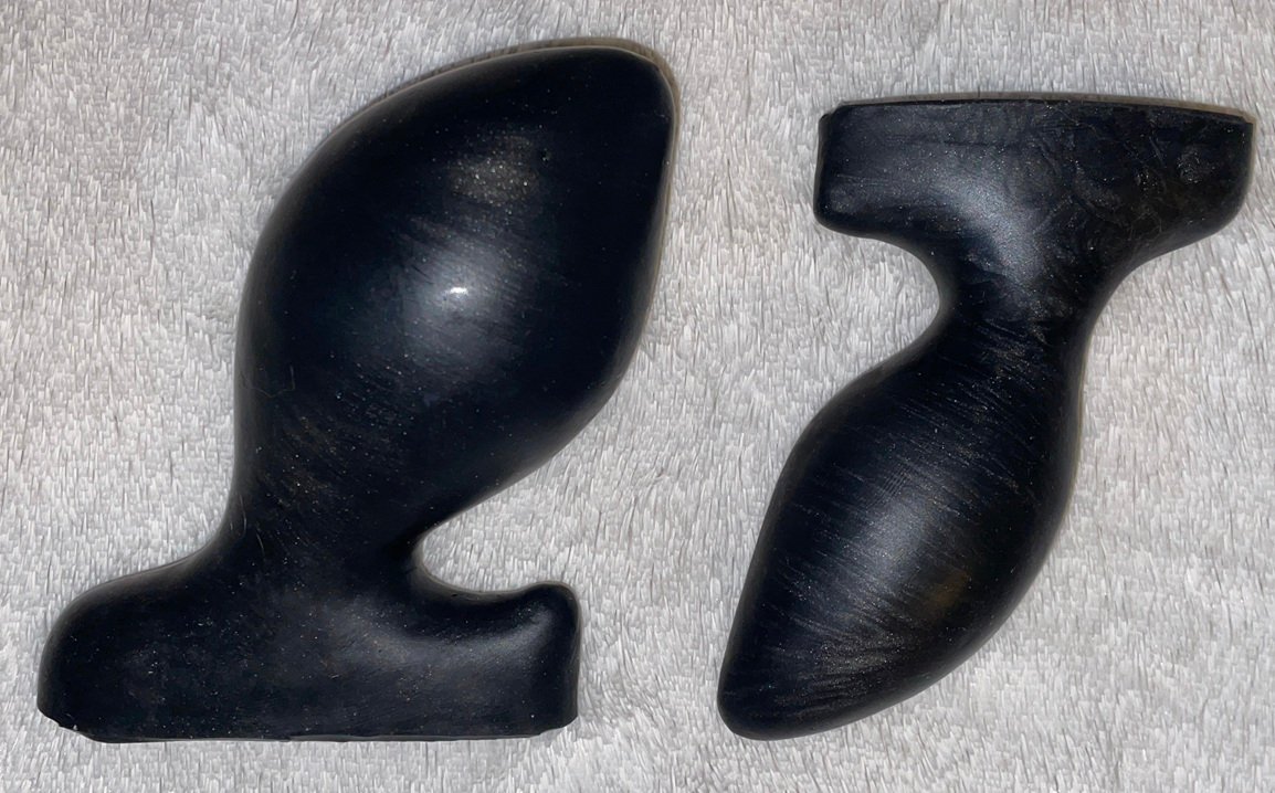 The roundness makes insertion and removal a little painful for me, but this is typical for me, with thick plugs and knots. It was the most intense around my entrance rather than on the skin strap inside. For insertion, I need to heat and prepare for a brief crunch; for removal, I reduce the pressure by using one hand to prevent the skin strap from stretching out from the body (pressing both fingers on the skin at the top of the entrance).