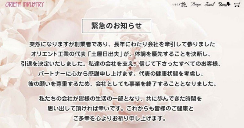 “It is sudden, but Hideo Tsuchiya, the founder of our company Oriental Industries, who has been leading our company for many years, has decided to retire and prioritize his health. We take this opportunity to express our sincere gratitude to all our customers and partners who have believed in and supported Oriental Industries. Considering the health of our boss and out of respect for his wishes, the company has decided to cease operations. If you can remember the time we were part of your company’s life and the time we traveled together, we would be very happy.
