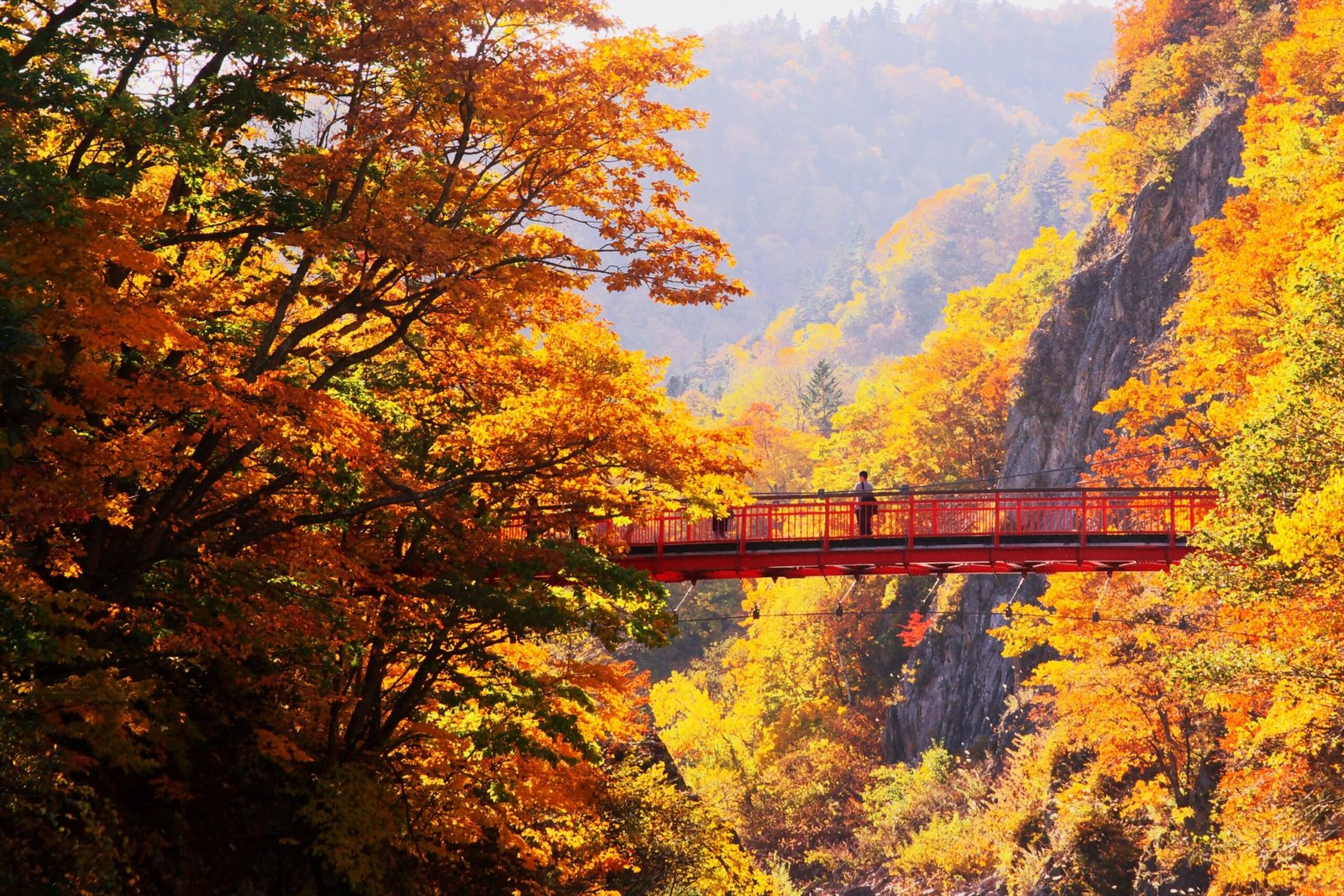 Less than an hour from downtown Saporo, you will find the amazing Jozankei Onsen, a beloved hot spring town. Known as the “Sapporo’s Hot Spring Forest” and is surrounded by mountains, the area allows you to enjoy the vibrant autumn leaves by strolling through the town. The views of the Futami Suspension Bridge are a must-see, with magnificent glimpses of the valley below. Starting from early October, the “Five Big Autumn Leaves” tour begins, with the shuttle taking visitors to five different viewing attractions.